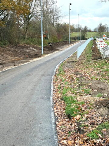 Mit der fast fristgerechten Fertigstellung (nur 1 Woche Verzug), ist ein 1,2 Millionen Euro teures Projekt abgeschlossen, das über das Nahverkehrs-Projekt Smile 24 von Bund und Land finanziert wird. Die Gemeine hat rund 350000 € draufgesattelt, um eine Bussonderspur entlang des Sportplatzes zu schaffen. Dadurch wird die innerörtliche Straße Vogelsang von den abfahrenden Bussen nicht mehr genutzt und ruhiger. Denn das sind wochentags immerhin rund 100 Fahrten weniger. -fw-