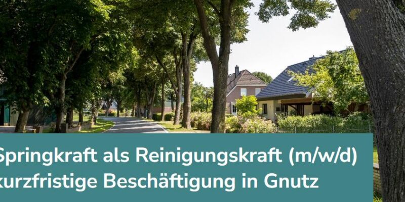 Die Gemeinde Gnutz sucht zum nächstmöglichen Zeitpunkt eine Reinigungskraft!