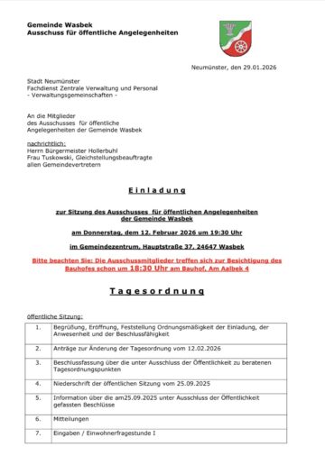[Amtlicher Beitrag] Der Ausschuss für öffentliche Angelegenheiten lädt zu seiner nächsten Sitzung ein: