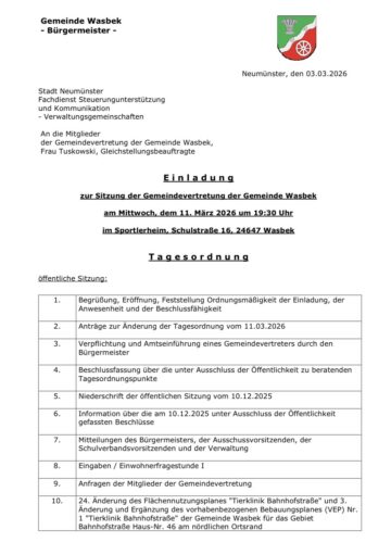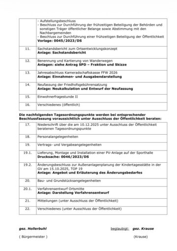 [Amtlicher Beitrag] Die nächste Sitzung unserer Gemeindevertretung steht an. Agenda vorab anbei. Klickt auf den Bildschirm: