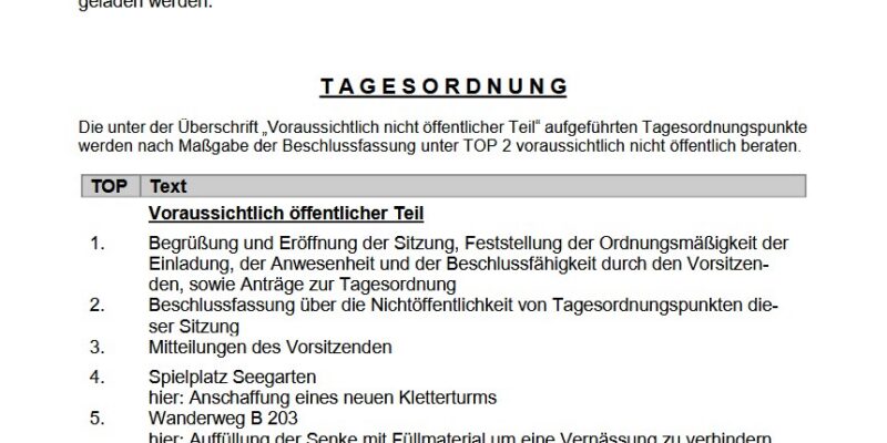 [Amtlicher Beitrag] Sitzung des Ausschusses für Bau- und Wegeangelegenheiten, Landschaftspflege und Umweltschutz der Gemeinde Groß Wittensee