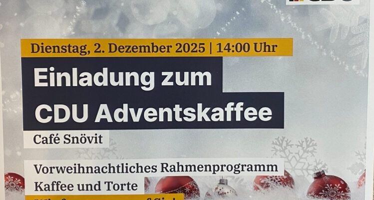 Wir laden herzlich am Dienstag, den 02. Dezember um 14.00 Uhr zu unserem Adventskaffee ein und freuen uns auf einen gemütlichen Nachmittag in vorweihnachtlicher Stimmung. Genießt Kaffee und leckere Torte sowie ein stimmungsvolles Rahmenprogramm, das uns gemeinsam…